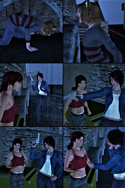 "Pretty girls shouldn't be out so late," rasped a wiry voice. Scarlet watched as the shadow leaped up onto the wall and stared down at her with glowing red eyes. Scarlet wrinkled her nose in disgust as she reconized the stench of a rat-man.