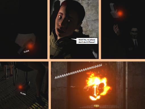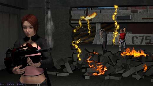 Scarlet turned to James."You go on in," Scarlet said. "I won't be long." James nodded and entered the building. She sighed as she carried the bottles over to a trashcan. As she tossed the bottles into the Dumpster, a shadow suddenly raced across behind her causing her to turn around.
