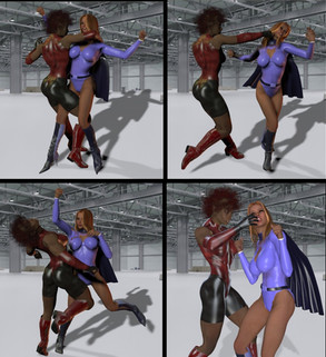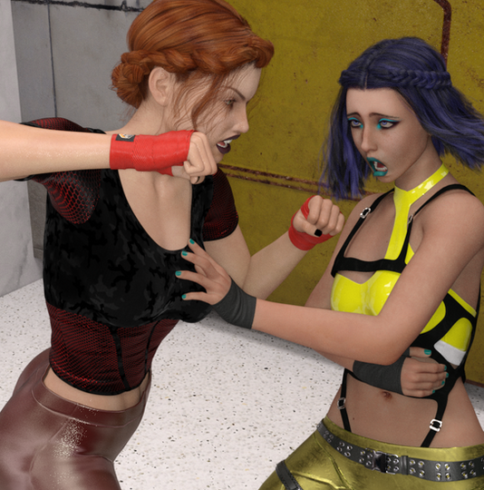 Scarlet drove a vicious hook punch to Amber's ribs. As Amber bent over, clutching her side, Scarlet drove her knee into Amber's face. As she fell backward, Scarlet reached out and grabbed Amber by the hair. Scarlet pulled Amber forward, bashing her elbow into Amber's face. Scarlet prepared for another elbow strike, but Amber stopped her strike.Related content