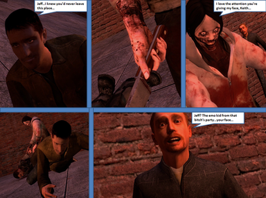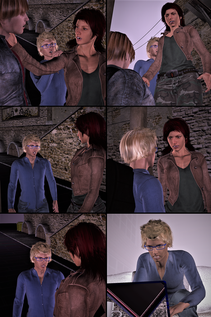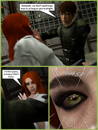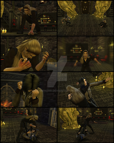 "You had your chance, lady," Randy said, as he took out a switchblade.In that moment, Scarlet darted forward, catching Randy's wrist before he even had the blade out, and caught him in the throat with her hand, causing him to drop the knife. James watched in amazement as Scarlet thrust Randy off his feet and onto the ground.