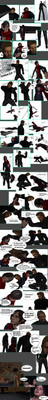 "Let me go!" Randy demanded, clutching at Scarlet's wrist trying to pry her hand away. Scarlet glared up at Randy and tightened her grip.