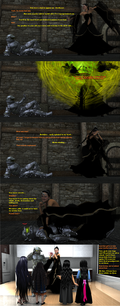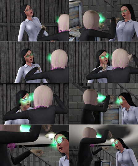 Suddenly, but pure luck Raven's cell phone in her room started to ring, causing Lady Necro to turn around. Raven sighed in relief that she hadn't put it into her pocket. Lady Necro's footsteps moved away from the couch. Now's my chance, Raven thought as she hurtled over the couch, making a dash for the door. The movement caught Lady Necro's attention and she turned to see Raven rushing for the exit."Stop," Lady Necro suddenly commanded thrusting her hand out to Raven and she suddenly went stiff unable to move.