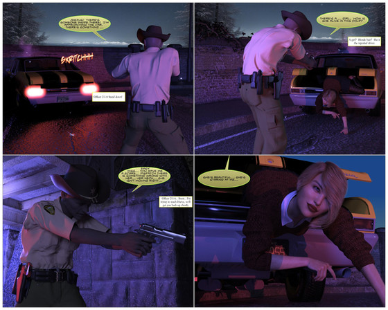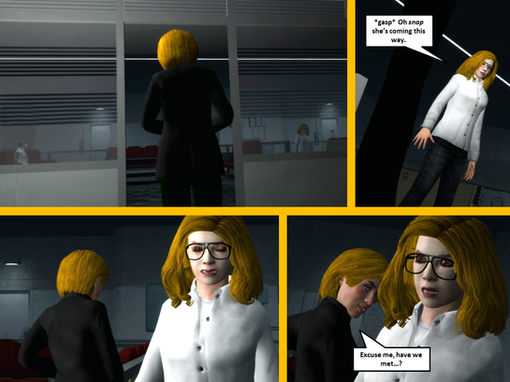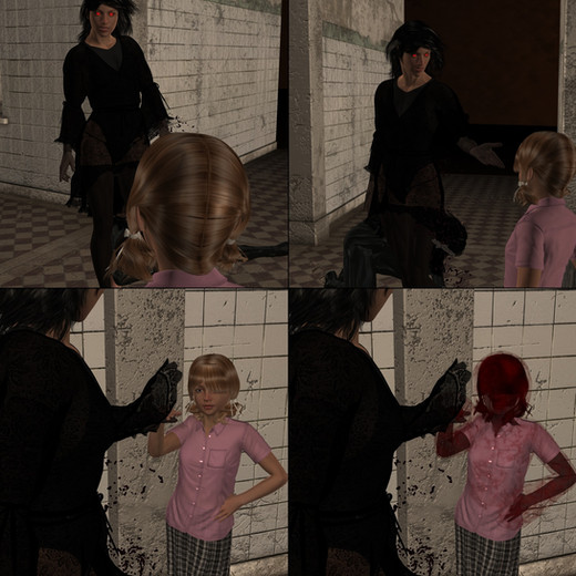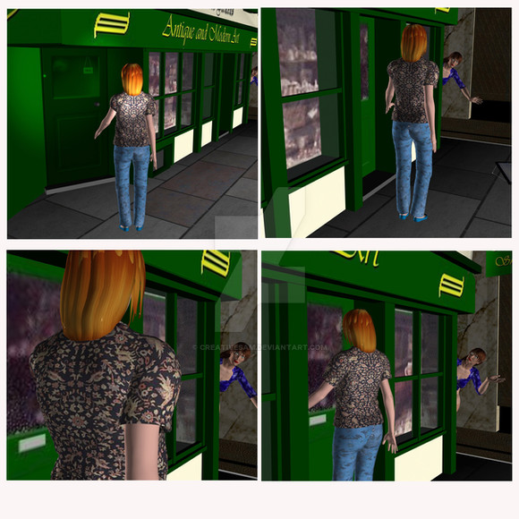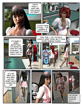 Across town, Jena was closing up the diner for the day. She nodded her head in tune with her music coming from her ear buds. As she swept the floor, she sang to herself, ignoring the knock on the door. The knocking became louder and more demanding, and finally got her attention, causing her to turn around. Reconizing the woman standing outside, Jena sighed uneasily as she removed her ear buds and walked over to the door."I'm sorry Ma'am, but we're closed," Jena said through the door.