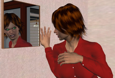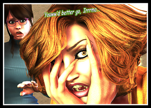 "Look, I really need to get back to my cleaning," Jena said, backing away from the door. The innocent smile on Amber's face suddenly turned menacingly dark. She punched her fist through the glass door. Jena screamed and backed away.