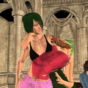 "Did you see that," Lilith asked, turning to Clara."Mmmhh," Clara mumbled as she struggled against Lilith's hold.
