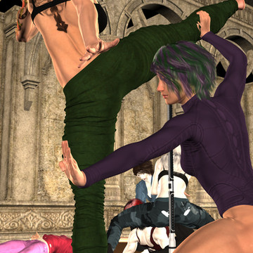 Hannah bent backward as Viper swung another kick. Samantha suddenly came in with a kick of her own colliding against Viper's leg, stopping her kick."Leave her alone," Samantha said.