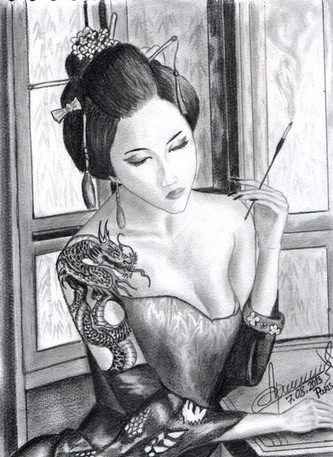 tattoo sketch in Japanese style , pencil 4H and 8Babout 14 hours