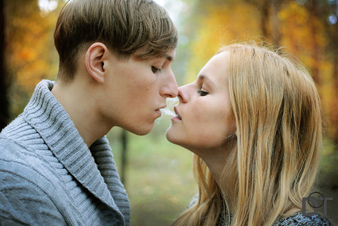 I like the color contrast of the autumn leaves surrounding the model. And his eyes are lovely.