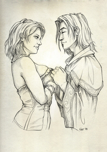 I LOVE this. I adore both versions, with her having an armor and this version. I love how they are holding their hands, ready to face their destiny together! Great art man, keep on doing amazing pieces like this.