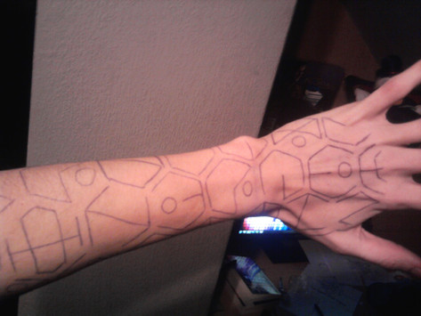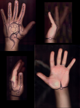 This piece is inspired by the Mortal Intrument Series by Cassandra Clare. In the book runes are what give the Nephillim (Humans with the blood of angels created to rid the world of demons) thier extra abilities. They draw these on themselves by using a stele. They have marks for everything.