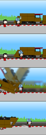 "Huh, I wonder why there's a warning sign here?"Made using walfas extended.