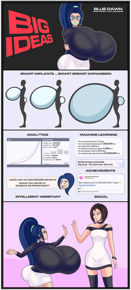 It wasn't unusual for billionaires to have vanity projects. Some might build space colonies, or create charities and endowments in their name. Some might invest in new companies or technology. It was reasonable. After all, you have to put all that money to use somehow, right?Purple's vanity project was perhaps a bit more self-involved than the usual fare though. Her breasts were already pushing hitherto unknown boundaries. Really, no one but Purple even had the resources to go this far in the first place. It was practically unthinkable that breasts could be this big. Even more importantly, it might not be scientifically possible to go larger than she already was. Or so the thinking went.