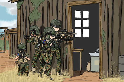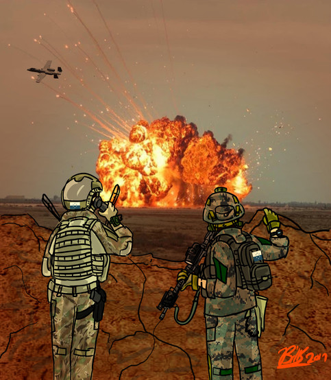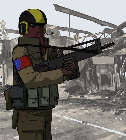 Combat Outpost Reyes was named after Staff Sergeant (E-6) Alex Reyes, an NCO attached to the 1st Paramarine Battalion who was KIA in Hasra Province this February. SSgt. Reyes was assigned to A.Co, 1st Paramarine Battalion after completing indoctrination program in 2009 and he served two tours in the Yuktobanian theater as a support gunner. When combat operation in Yuktobania ended, he opted to remain in the battalion as a indoctrination program cadet conducting assessment and selection on new recruits for assignment in the regiment. In 2014 when Osea's involvement in Romny intensified, he received orders to return to combat duty. Since then he had completed ten combat rotations. He lost his live in February 2017 during a HVT direct assault raid in Hasra Province.Two of the Paramarine infantrymen in this photo went through Paramarine indoctrination program together, even though they went to separate battalions they still remember him dearly.