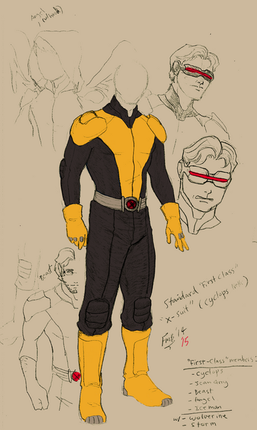 So I'm one of the thousands of X-Men fans that HATED the costumes used in the X-Men movies... Yeah, thanks FOX... I am, however, not one of those people that demands yellow and blue spandex outfits either. I think there is a way for movies to have super heroes wearing a believable outfit, whilst also staying true to the source material. I loved the Avengers for one reason (well lots of reasons but one main reason) because I got to see the super heroes I grew up with on the big screen, looking like themselves. SO... here is a concept of the 'First Class' suits, I've drawn. Unfinished, of course. Just pen and pencil.I know these aren't like the costumes of the original 'First Class' but let's be honest, no one really likes the first class costumes over the 90's/Ultimate versions. But at least it's the right members! I wanted it to be a uniform but also be adapted to individual uses.