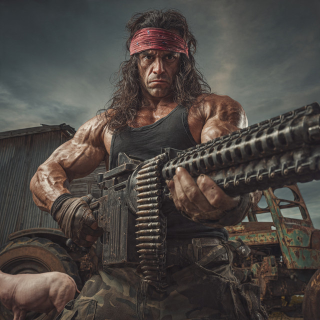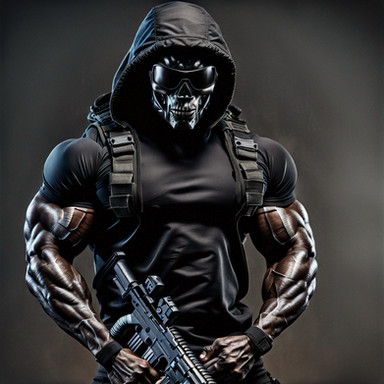 #warrior #portrait #weapon #armored #cinematic #conceptart #cyberpunk #darkart #futuristic #gritty #helmet #hyperrealism #maskedman #metahuman #muscle #oskar #pistol #scifi #strongman #supersoldier #tactical #maleaction #aiart #goldgun #menphysique #oskarst