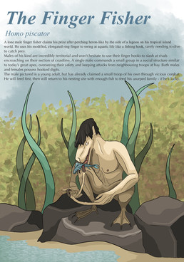 For my first #Spectember2021 entry I decided to dip my toe in the waters of future evolutions of humanity before explored by Dougal Dixon and Memo Kösemen. Welcome to the far-off future of Post Humanity, where human extinction by the artificial intelligences in the great Progenitor War was just the beginning of human expansion into the universe. Having grown to regret the extinction of their creators, the Preserver AIs spread across the galaxies carrying databases of millions of individual human genomes, in order to recreate the human species on terraformed worlds to grant them another chance to explore their evolutionary potential.A few extra fun tidbits about the mudcomber man: the species lacks hair follicles altogether and its lungs have merged into a kind of swim bladder to give it a way to control its buoyancy. In addition to sensitive fingers and large eyes, the mudcomber man also has electroreceptive organs for spotting prey that tends to hide under the substrate. Females tend to give birth to twins after a pregnancy lasting only four months. The species has a complex language consisting of sequences of whistles and clicks, and they use various tools for different purposes.