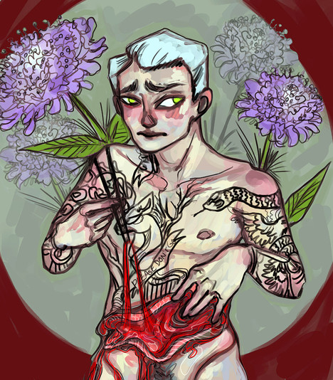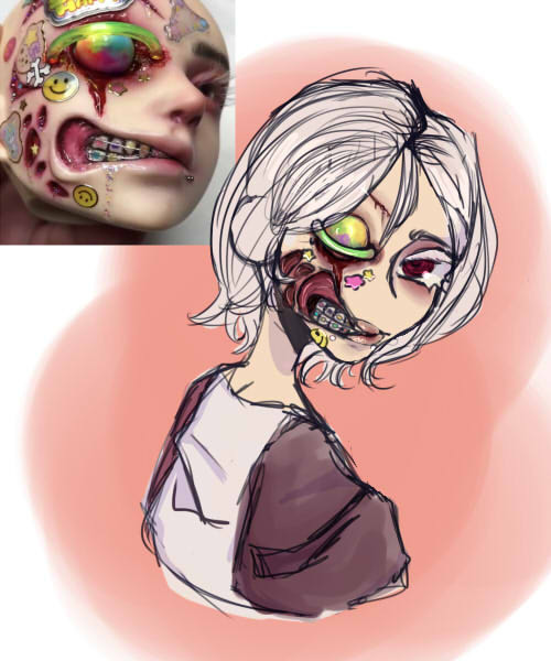 Really cool! He's so lashy ahh and I like that you make his jaw quite strong... this is a cool concept, the gory face is especially good