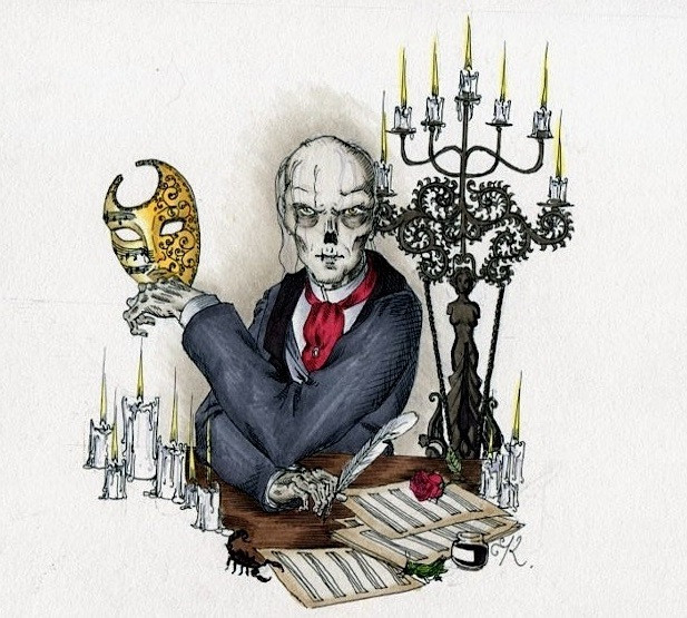 I wonder if, when Gaston Leroux created Erik, if he knew that instead of creating a horrific outcast, he was creating the archetype 'loner' that women would swoon over for the next two centuries?Β Even with his face deformed in your picture, he's still extremely attractive. You have him magnificently attired (which is how he dressed in the book) and even his stance is that of one still standing despite all his misfortune.Β The twist in him in your drawing is in his eye, the back drop of his famed torture chamber.Β Small wonder fan girls swoon over him.Β Nicely done.