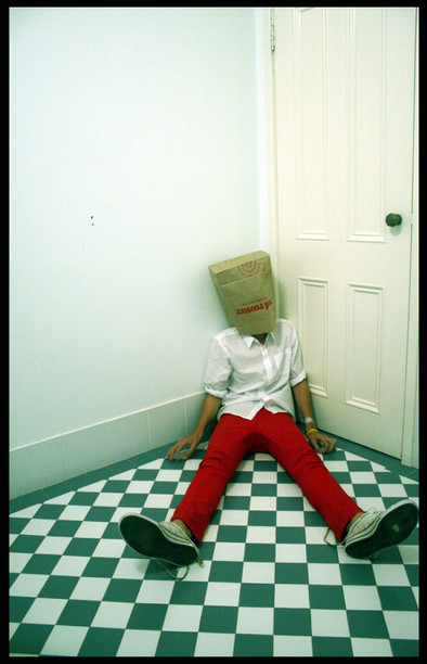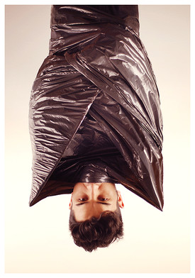 Wow, this is awesome! There are so many ways to read into this. On a first impression, I see our fear of being useless/worthless and no longer wanted, and how that feeling confines us and keeps us from living in spiritual freedom. Or maybe it's just a crazy guy in a trash bag who thinks he's being abducted by aliens. One never knows.