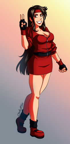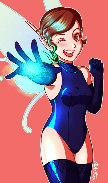 LOVE her hair. Wow! I feel like I've been saying this on a lot of your art lately, but I think you've leveled up on how you draw hair. Again, the shadows and highlights add even more life to the shape of the hair -- they paint this sense of flow in how her ponytail swings around, how her bangs shoot out and flow back around her face. It's fantastic! And the colors, the lights and darks, are pretty dramatic and really make things pop.