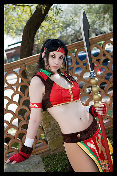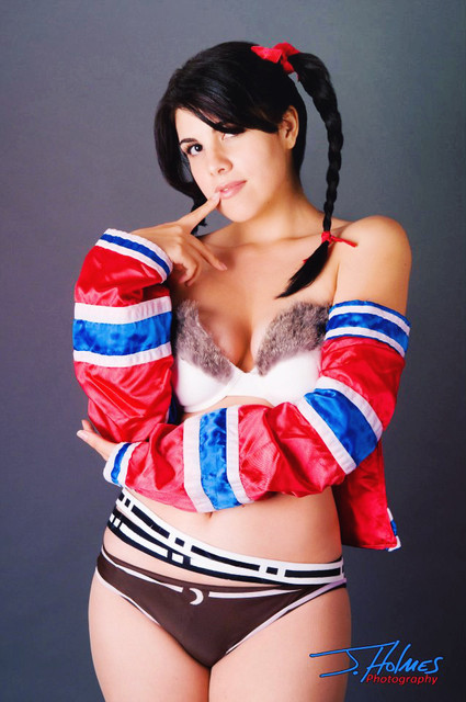 cool cosplay and hot hot cosplayer, the angle shows perfectly the dynamic pose and your sweet chest in the furry bra