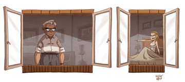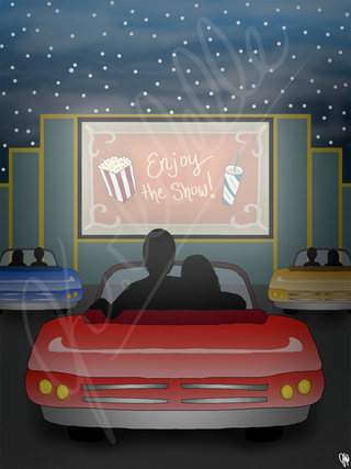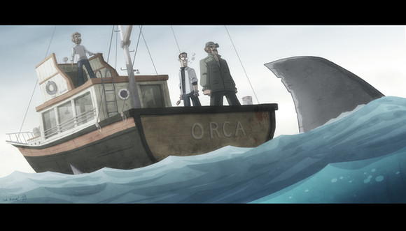 Nope. This is a memory of his, seeing the film with his family at a drive-in. The commission was ordered months ago. And I've never seen the book, so any similarity to anything in it is purely coincidental, I assure you.