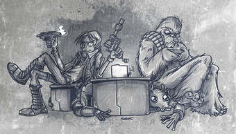 Hey Otis! your art is amazing! I've been learning how to "Digitally Paint" over the last couple years, I'm going to be getting into a more comic like feel. Can I ask if you could give me some tips or pointers to give it that more professional feel? I know I need to practice and do more figure drawings to help me feel more comfortable with body language and posture. One more question if you don't mind. Where did you get your library of textures? I watch your Ustream video of Han and Greedo and saw all of the textures! I've never really used them but I can see what it can do to a piece of art. Great work! Thanks for sharing your art and Ustream vids!