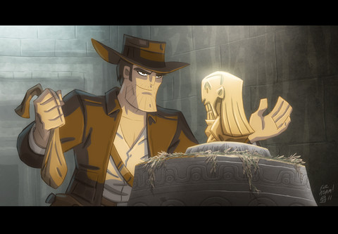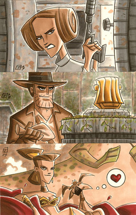 This is a digital commission featuring a gunslinger who never gets outgunned. Ever. Excpt every few years when a new home video version is released and his markmanship gets a little more bizarre. Whatever.Drawn and colored in Photoshop CS4 using a Wacom Cintiq 21UX.