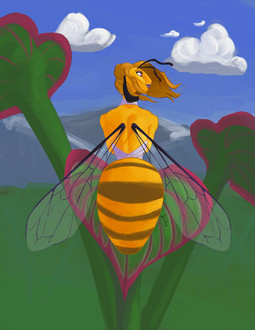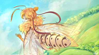 Based off a type of really colorful grasshopper. I was working on her before my computer crashed and so this is actually a newer version. I don't have my old computer files but I did send a WIP to a couple of friends and they sent it back so I had a sketch and stuff.I'm not sure when I'll get to the other monster girls. After all, I just got back my computer, plus my zombie!girl I had fully finished on my other harddrive so. *shrug*