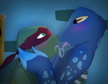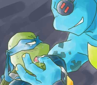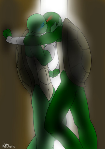 Leo whimpered again squirming under Tonie till he froze his eyes widening at something behind Tonie. Before Tonie had the chance to look, he was flung back. The spikes of his shell scraping against the metal floor. Tonie rolled into a ball flipping onto his feet with the momentum. He only had a spilt second to dodge a large green fist aimed at him. His assailant, a large snapping turtle in a red bandana. Tonie dodged another punch his back slamming into the wall of the subway cart. "Shit." He cursed as the snapper had him cornered all he could do was raise his arms up preparing for the next attack.