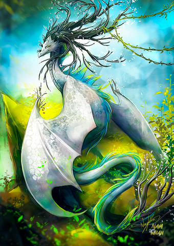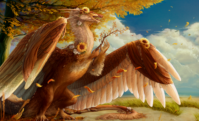 Woahh, this is absolutely gorgeous! *O* I really love the design of the character, such a majestic dragon and the flowers on him/her are such a nice twist! ;v; The colouring is amazing too, the bright colours really make this pop! Brilliant job!