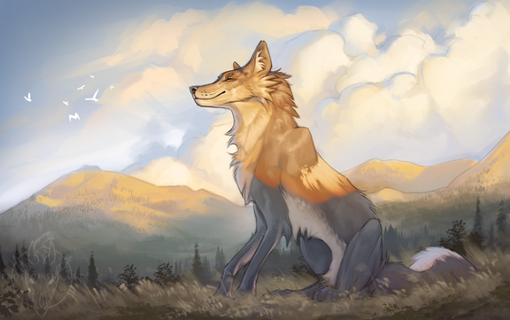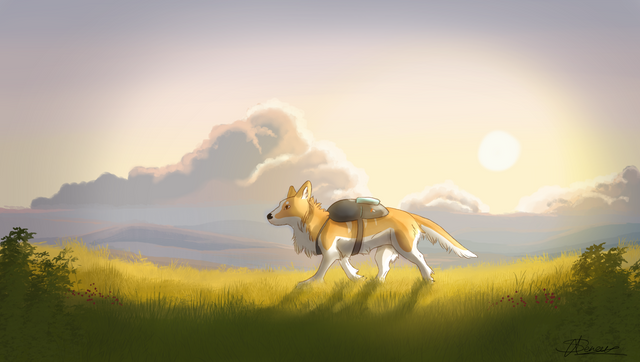 #digitalart #dog #canine #originalcharacter #digitalpainting #birds #characterart #fleurdelis #flowers #grass #medieval #mountain #mountains #scene #sunset #digitalscene #art