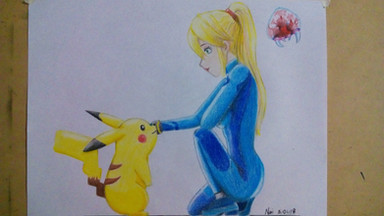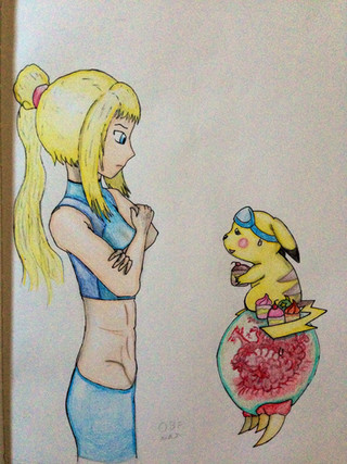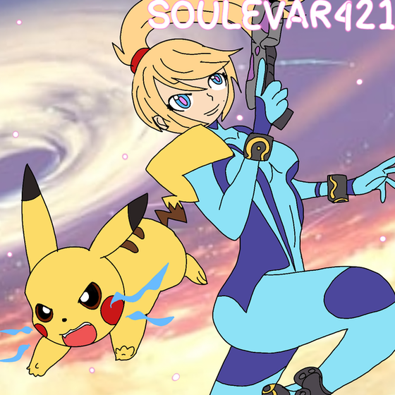 #aran #bar #crossover #helmet #metroid #nintendo #pikachu #pokemon #samus #samusaran #wip #outerbluefox #pikachupokemon #zerosuitsamus #zero_suit_samus #samusaranmetroid