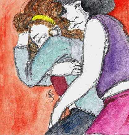 First pic of new profile...Heather Mason and Rebecca Chambers cuddling by a fire.
