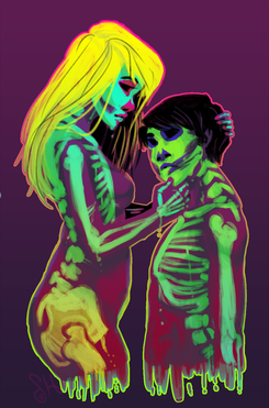 This is freakin' amazing! I love the dark colors with the bright highlights along the edges of the characters, and the varying expressions - is Ziggy going to cry? D:!