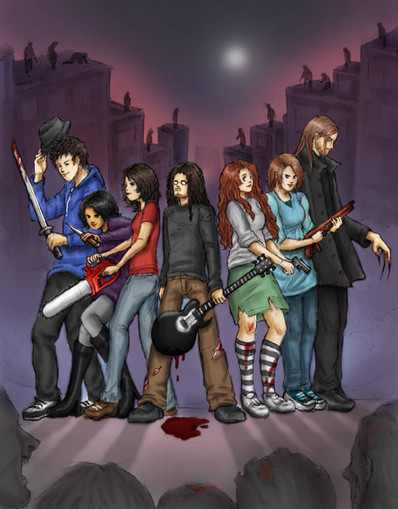 Ahhh this is so dramatic. The combination of poses makes for fabulous composition as well as for portraying the personalities of the characters. :'D The lighting is very nice, and zombie apocalypse scenes are perfect for texture-raping.