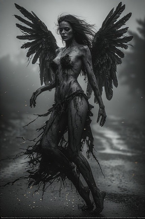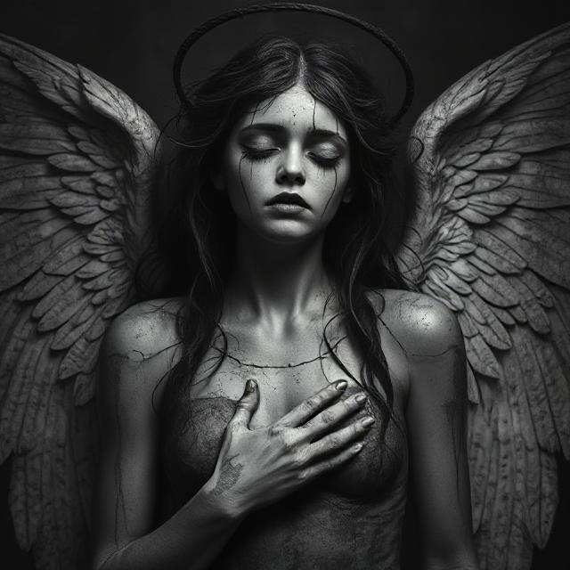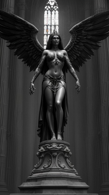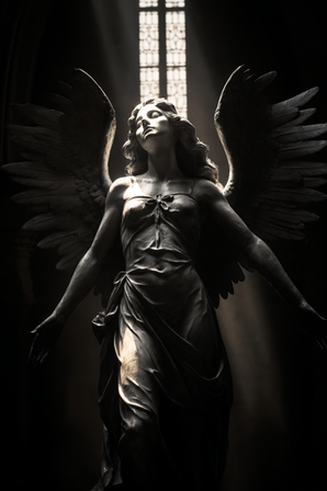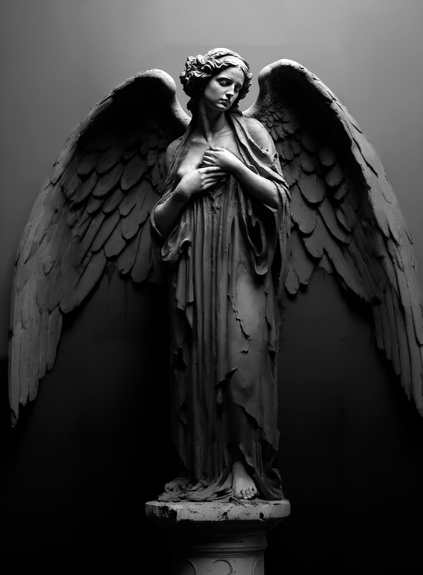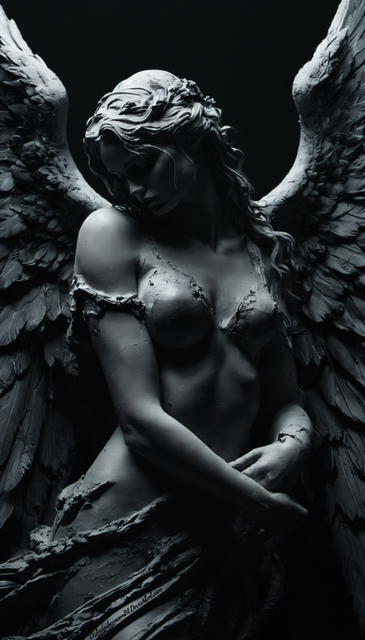 #angel #angelic #blackandwhite #ghotic #gloomy #monochrome #statue #darkfantasyart #artworkdigital #darkartillustration #midjourney