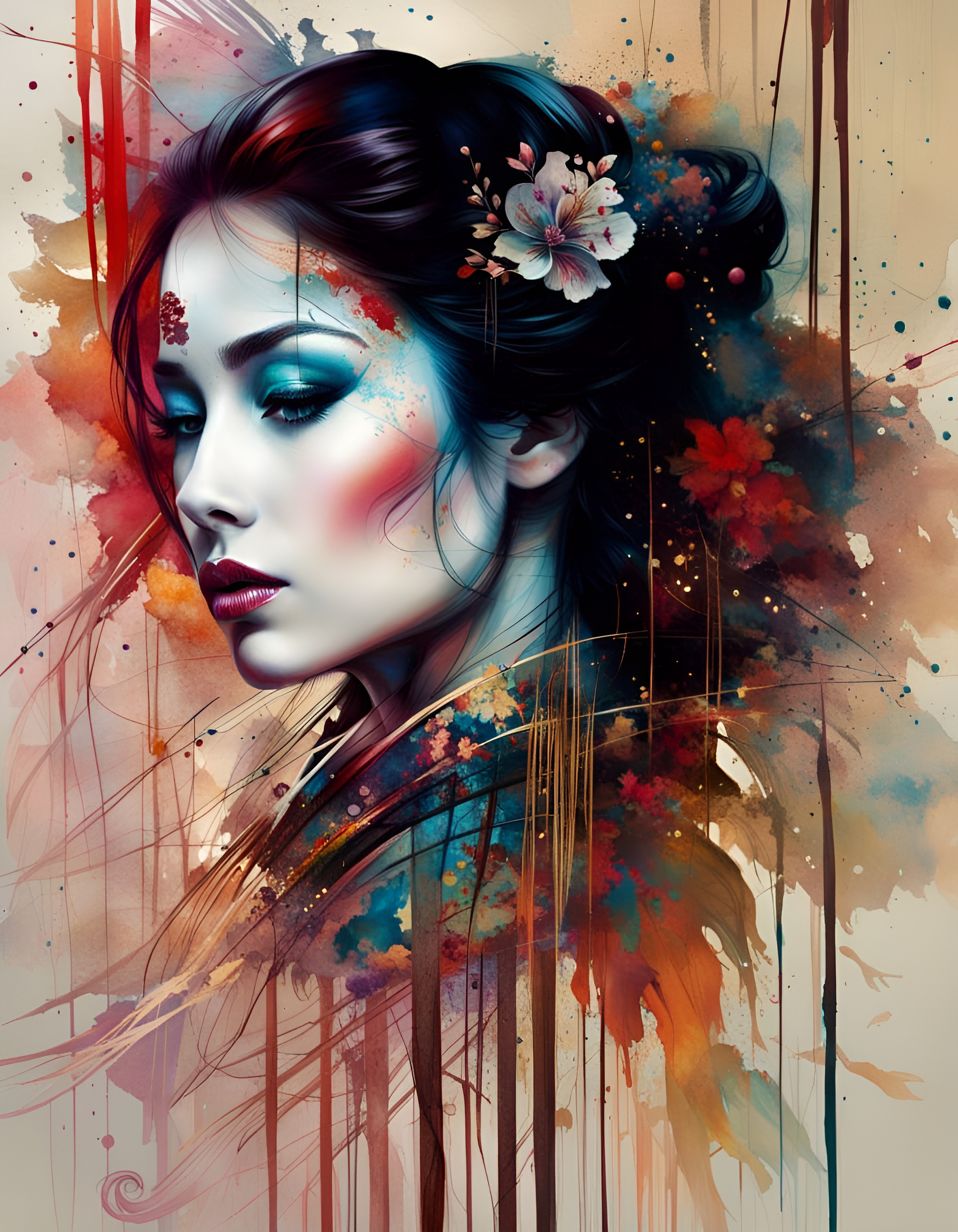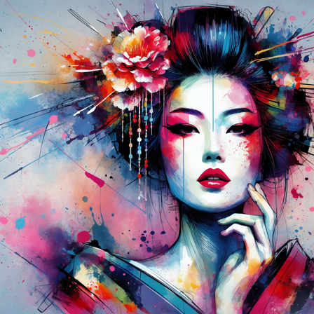 #geisha #geishawoman #japanese #japanesewoman #kimono #modernart #paintingportrait #popart #vividcolors #geishaart #artworkdigital #ai_art #stable_diffusion_ai_art #dall_e3