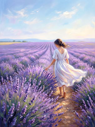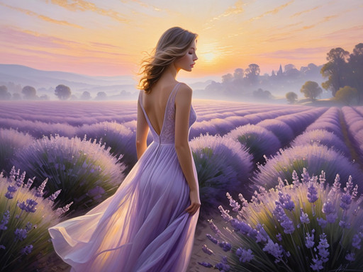 #beauty #digitalart #portrait #digitalpainting #body #dress #blondebombshell #day #flowers #lavender #paintings #walk #woman #womanindress