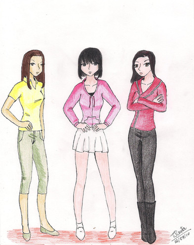 This is a really good picture! You draw VERY well. The only thing is that Brittany has Eleanor's eyes; Eleanor has Jeanette's eyes; and Jeanette has Brittany's eyes. But it's a very common mistake, lol.