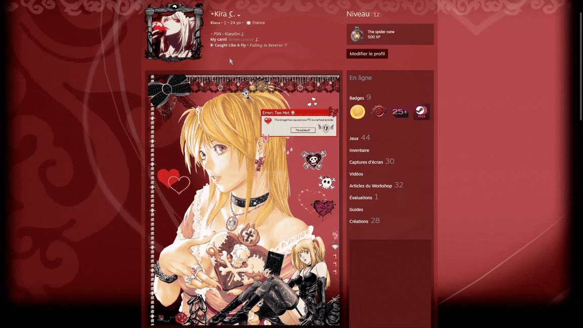 It went out pink, but it suits her. I love the art used, it's from deathgod.org (yes, it's a credit xD).