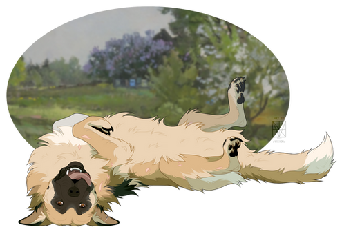 #canine #commission #digital #digitalart #dog #feral #field #flowers #fullbody #grass #lemon #pet #pinknose #resting #shadow #smile #spots #summer #trees #warm #white #background #dalmatian #laying #orangeeyes #pawpads #sunshine #winking #paypalcommission #fullbodycommission