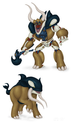 yesss. He looks very chunky. I like how the T-rex head gun looks more like a fusion cannon :3