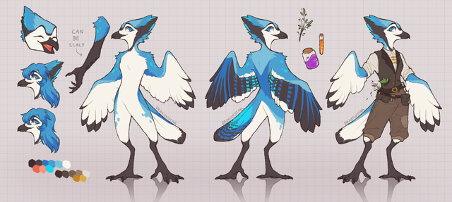A character design commission for Drake. Based off a black throated blue warbler!Related content