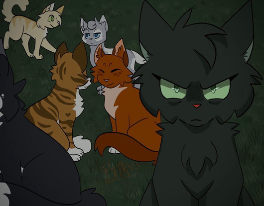 This scene is supposed to be the sequel of this oneΒ The announcementSo some presentations have to be made! (I know I have to create ref sheets of my characters)..The she cat in the center in named Fallenwhisper, she doesn't like the way Sootstar leads the clan and she wants to change things..She's not the one thinking that way in the clan, some cats want to change the system.