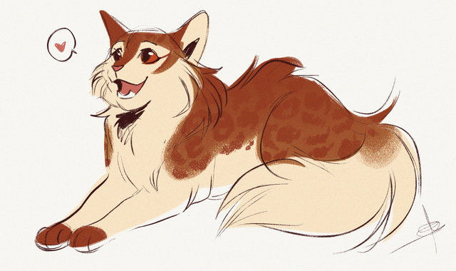 Pretty boy!! He reminds me of my real furry dudes with his red coat. Gorgeous design!