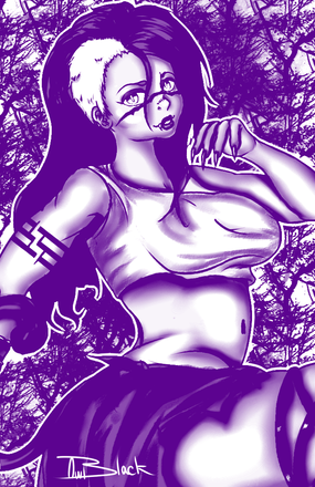 #oc #anime #female #punk #purpleeyes #tattooedgirl #tribal #facescar #darskin #shavedheadgirl #owlblackyt