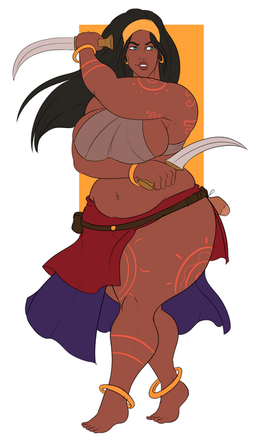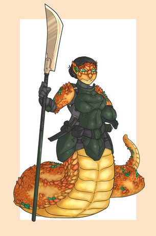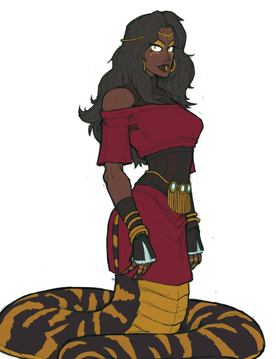 In this iteration she is the Bandit Queen, or Desert Queen. She has a tight grip on a large territory in the Savah Desert. With a large entourage of lamias and various other peoples this intimidating mistress has many connections throughout the underworld of the kingdoms.
