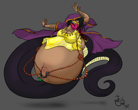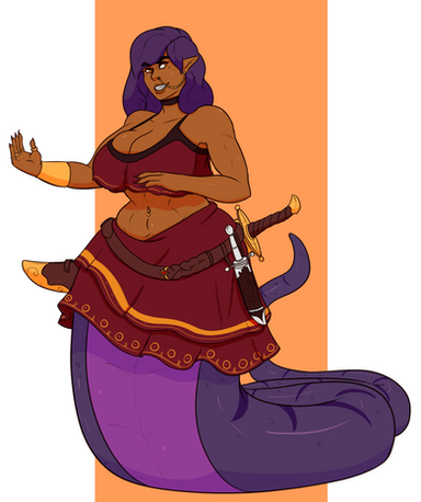 DarkHourglass wanted me to bring back another oldoc of mine the bandit queen Anoneim, a large naga that raids the desert lands of Savaah in my Farfolis setting.
