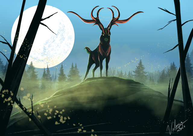 I love the idea of forest spirits and legendary beasts of the veil wood. He's SOOOOOO Ethereal looking ;w; beautiful.Β